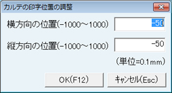 [F11 印字位置]ボタンをクリックでカルテの印字位置の調節をおこなうことができる。調整は初回のみで、毎回おこなう必要はない。