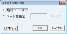 [印字終了位置の設定]画面が表示されるので、[最終ページまで]または、[ページ数設定]を選択(ページ数を入力)して[OK]ボタンをクリック。[印字設定]画面に戻る。
